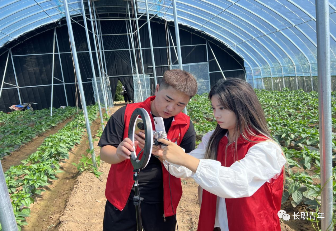 为实现乡村经济增长与结构优化,助力乡村振兴,实践团为本村主要农作物青椒、胡萝卜等进行直播宣传。