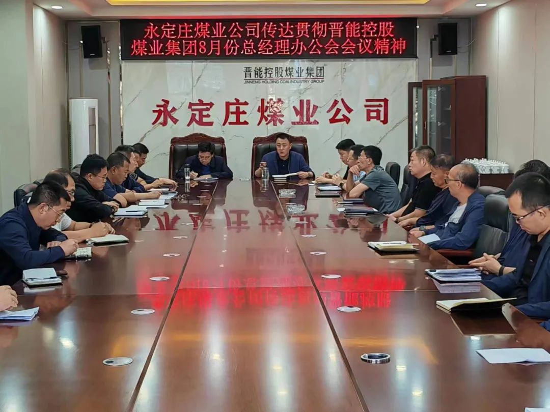 8月25日,永定庄煤业公司召开专题会议,传达贯彻晋能控股煤业集团八月份总经理办公会议精神。公司董事长李生鑫、党委书记副董事长焦义、领导班子其他成员及相关单位负责人参加。