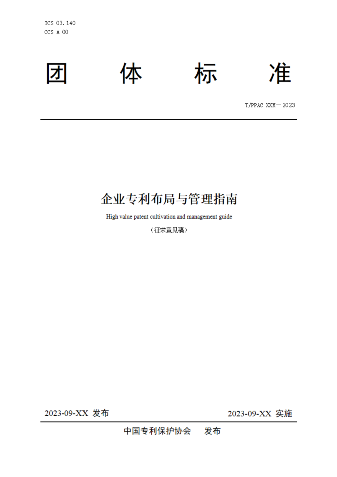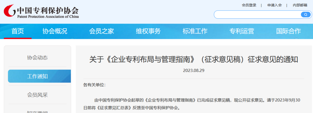 由中国专利保护协会起草的《企业专利布局与管理指南》已完成征求意见稿,现公开征求意见。请于2023年9月30日前将《征求意见汇总表》反馈至中国专利保护协会。