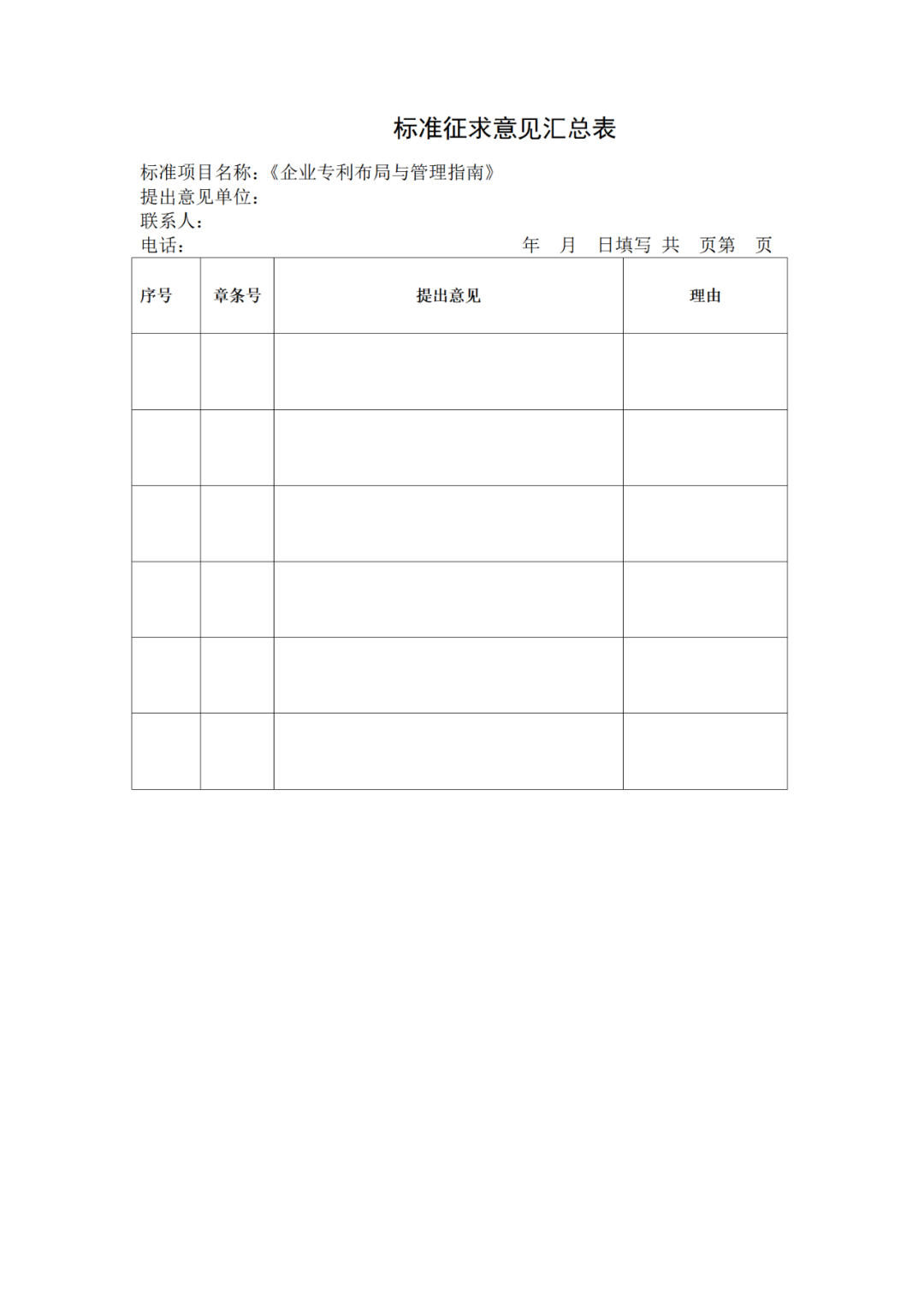 关于《企业专利布局与管理指南》(征求意见稿)征求意见的通知