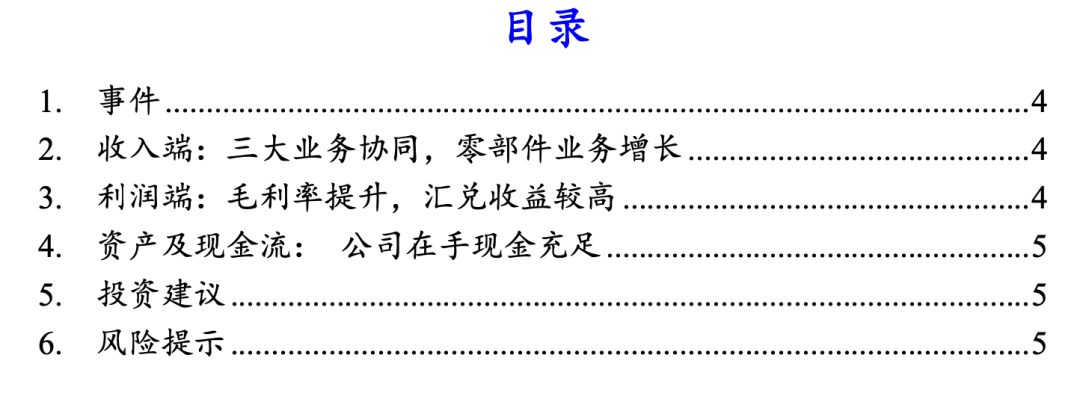 报告导读:公司业绩表现符合预期,汇兑增厚收益,零部件业务拓展迅速,代工主业短期拖累。增持。