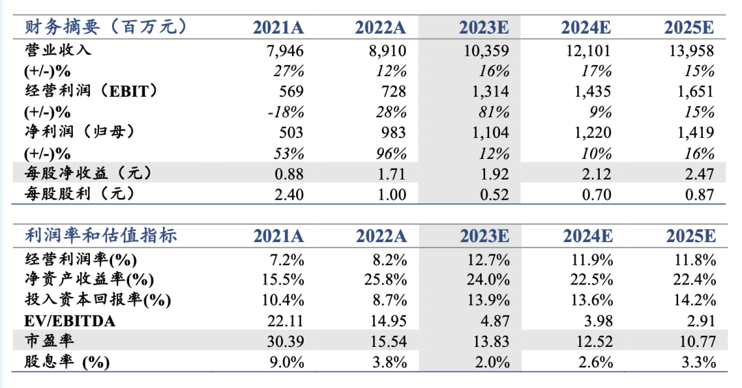 公司业绩表现符合预期,汇兑增厚收益,零部件业务拓展迅速,代工主业短期拖累。我们维持 2023-2025 年盈利预测,预计 2023-2025年 EPS 为1.92/2.12/2.47元,同比+12%/+10%/+16%,维持目标价34.19元,对应2023年17.8xPE。