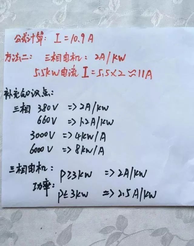 对比二者非常接近,个人觉得估算方法用着最快最实际,这也是老电工快速估算,看一眼用电器或者设备的功率就知道工作电流的秘诀所在了!