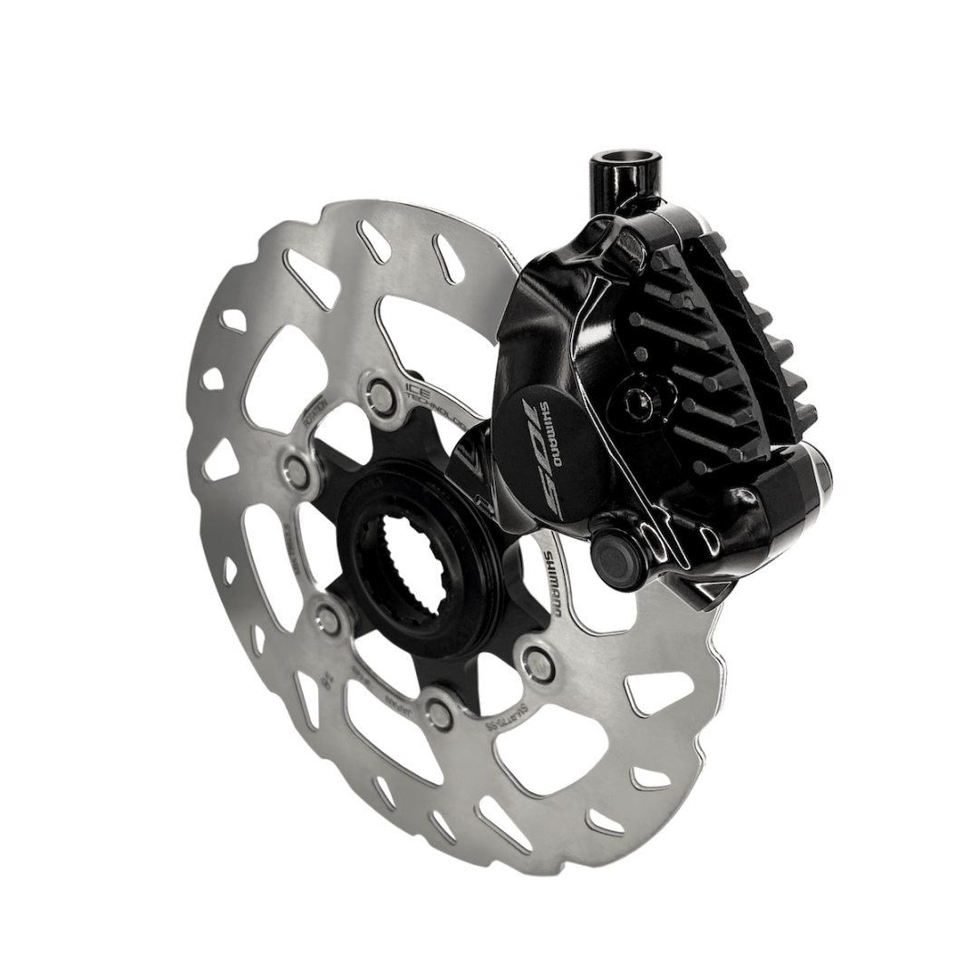 刹车制动性能经过优化,搭配禧玛诺105 BR-7170夹器使用,使刹车制动更轻松、更高效。优化设计的夹器与盘片之间的间隙增加了10%*,这意味着骑行时的刹车干扰更少,并且更加安静。这一套刹车系统重量轻、耐用且易于维护,并通过有针对性的创新设计来简化刹车灌油过程。禧玛诺105 R7100 机械变速套件仅提供油压碟刹系统。