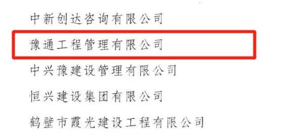 河南省监理企业二十强(建筑业骨干企业)