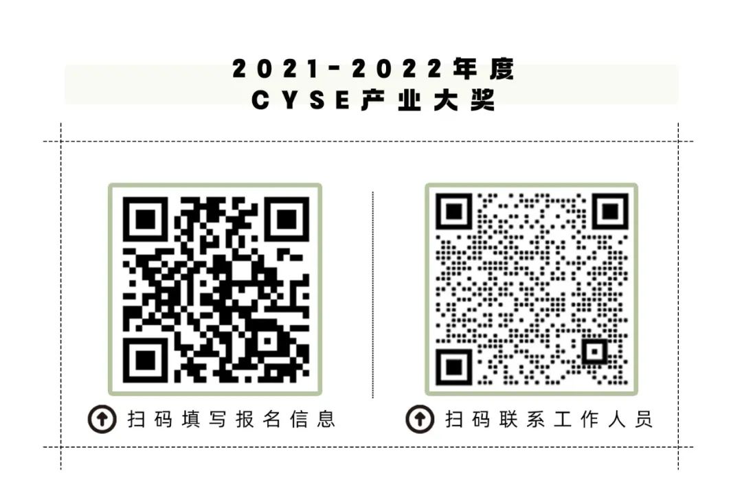2021-2022年度“CYSE产业大奖”面向全行业征集优秀企业及品牌的参与,报名的企业及品牌均可获得品牌的介绍与推广,让更多的人了解您的品牌,关注您,请扫描下列二维码提交申请或咨询工作人员。