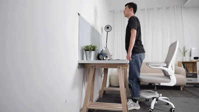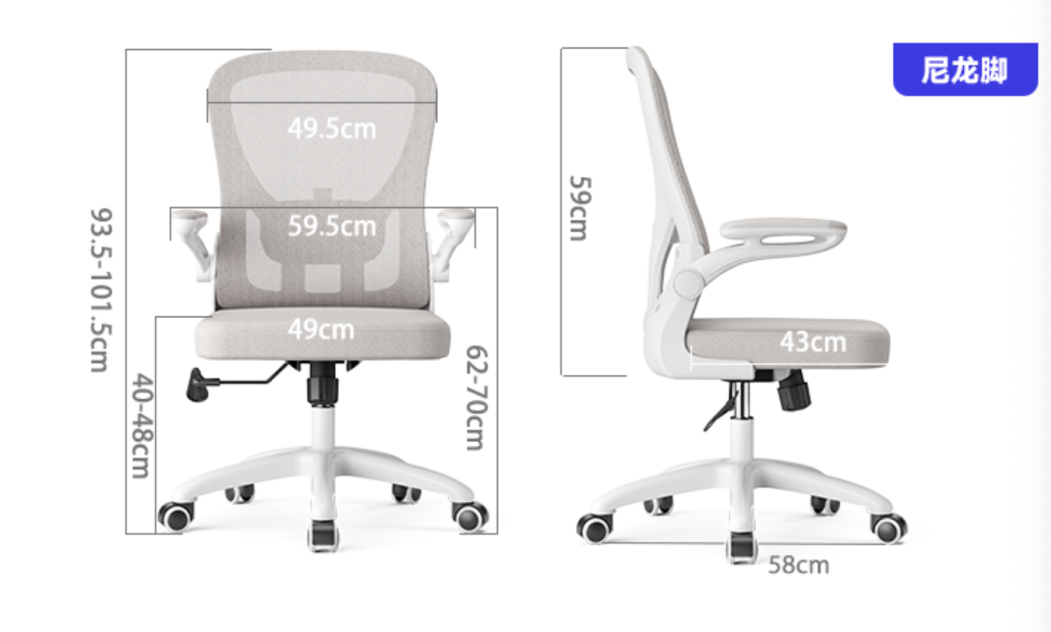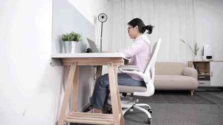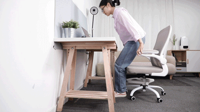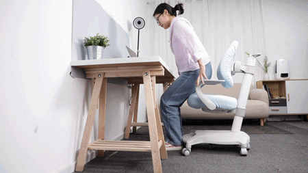 学习椅的扶手可90度可翻转,满足了不同尺寸的桌子,方便收纳放在屋里也不占空间。