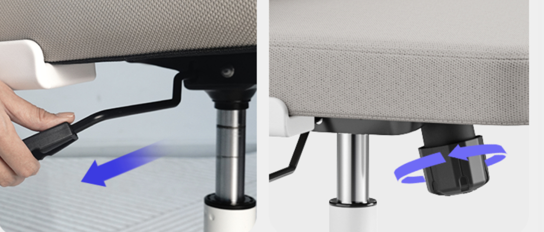 内推手柄椅子固定,外拉手柄一秒开启放松模式。