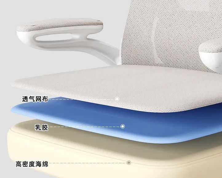小E学习椅是采用透气网布、乳胶、高密度海绵三层组成。
