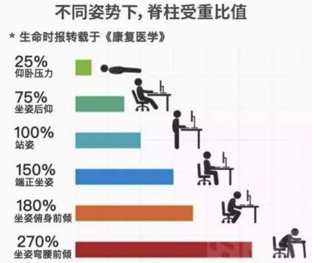 直立坐姿时的受力是标准站姿时的1.5倍;
