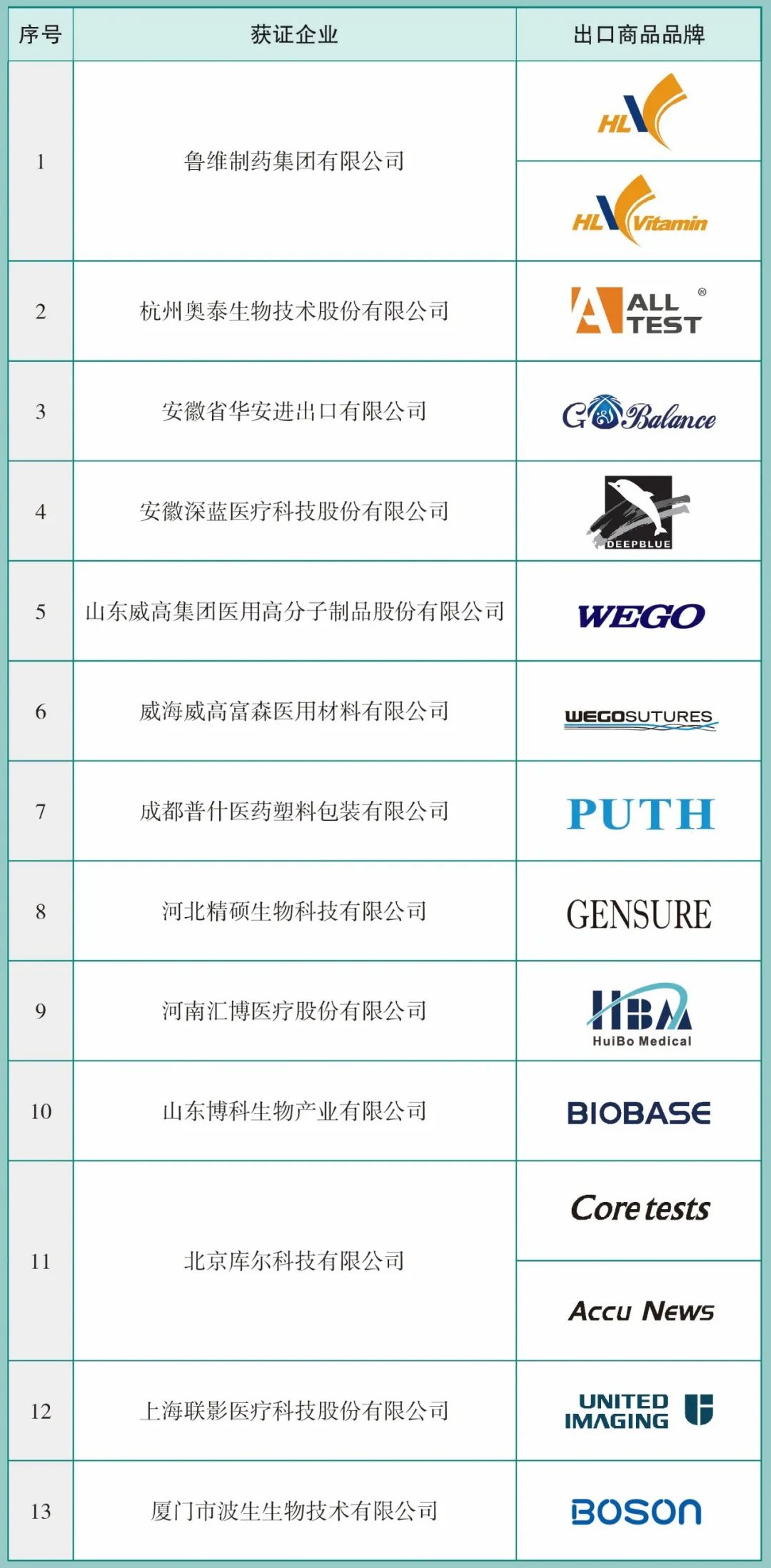 第二批名单里,安图生物、万泰生物、博拓生物、岚煜生物、精硕生物、迈克生物、天隆科技、亚辉龙获得“出口商品品牌证明书”。