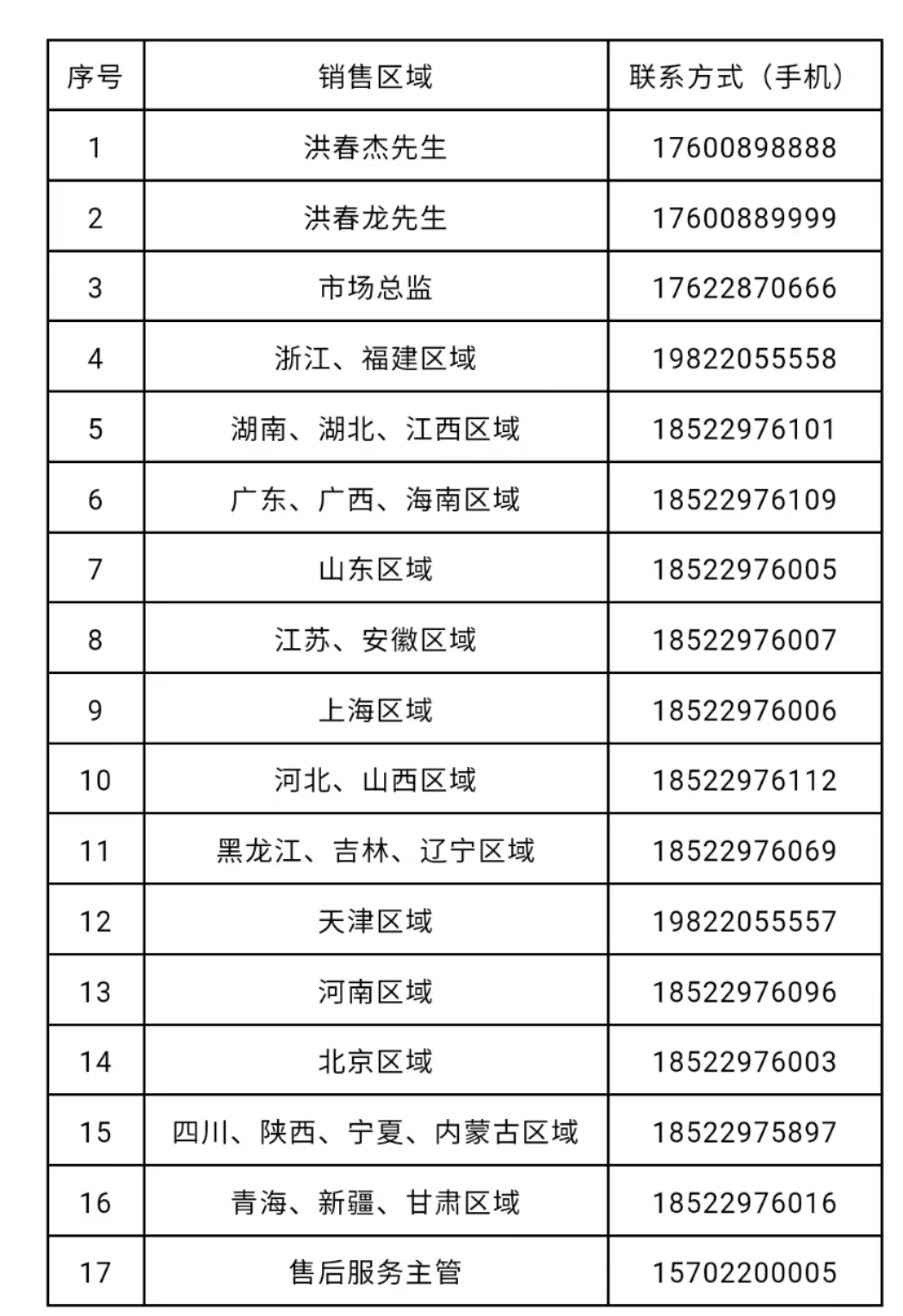 我公司全国区域销售联系方式