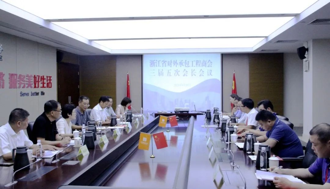 8月30日下午,浙江省对外承包工程商会三届五次会长会议在浙江通信服务有限公司顺利召开。省商务厅原一级巡视员胡潍康、省商务厅外经处副处长黄佳玫、省商务厅外经处四级调研员王金华等领导,商会会长吴飞,副会长丁春风、华爱国、刘明华等共计15人参加,会议由何云秘书长主持。
