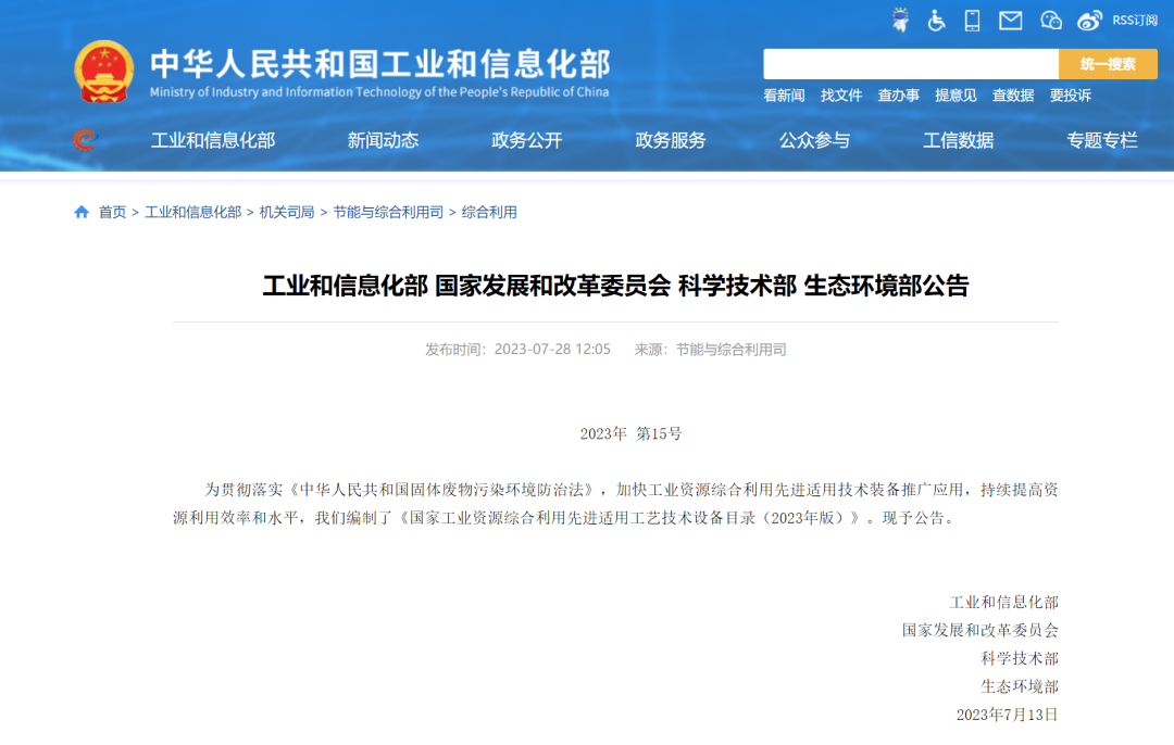 工业和信息化部 国家发展和改革委员会 科学技术部 生态环境部公告