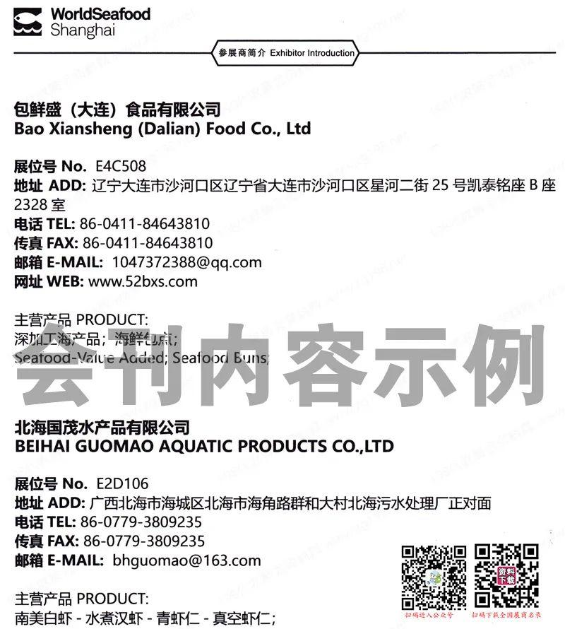 2023上海渔博会会刊、第17届上海国际渔业博览会展商名录,含企业简介,参展展商联系方式等,是你寻找项目、产品与厂商货源的最佳帮手。不用再东奔西跑,你坐在家中也能寻找好的产品与项目!如果说你需要此资料,可以联系客服在线下载。