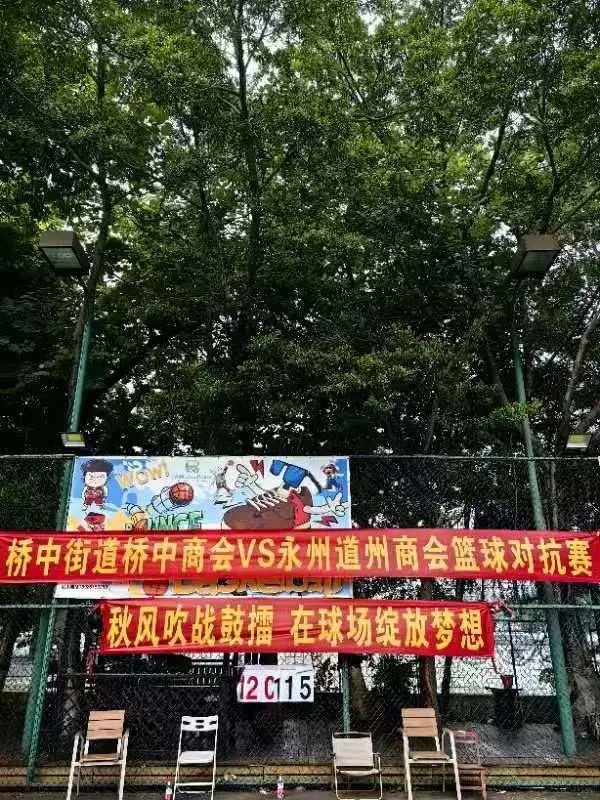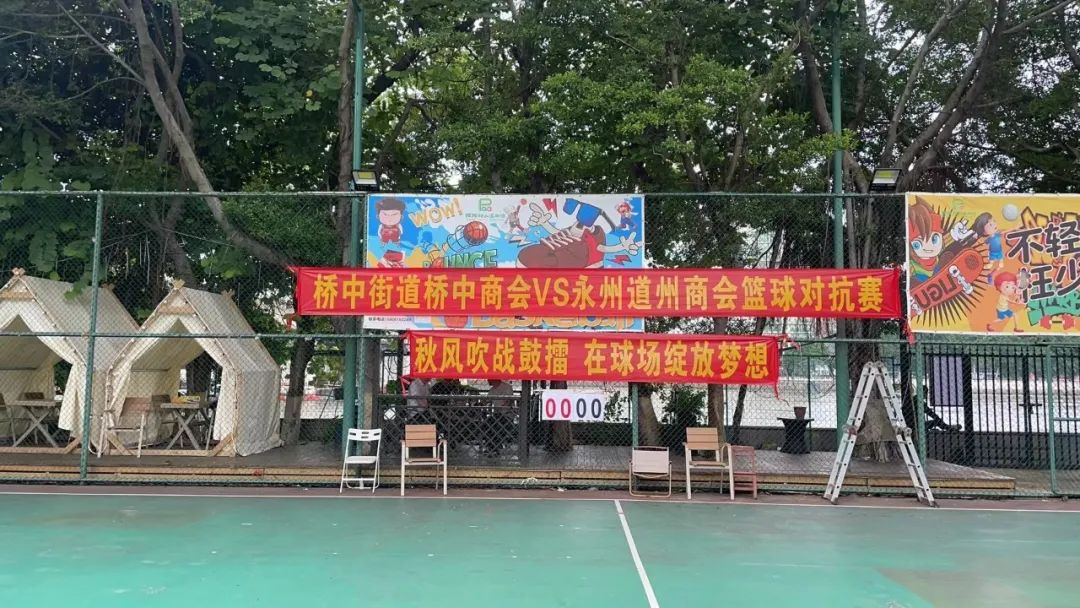 为充实桥中群众文化生活,贯彻“全民健身”精神,8月30日下午四点, 桥中街道桥中商会联合永州道州商会在红楼一号球场中进行“秋风吹 战鼓擂!在球场绽放梦想”主题篮球对抗赛。