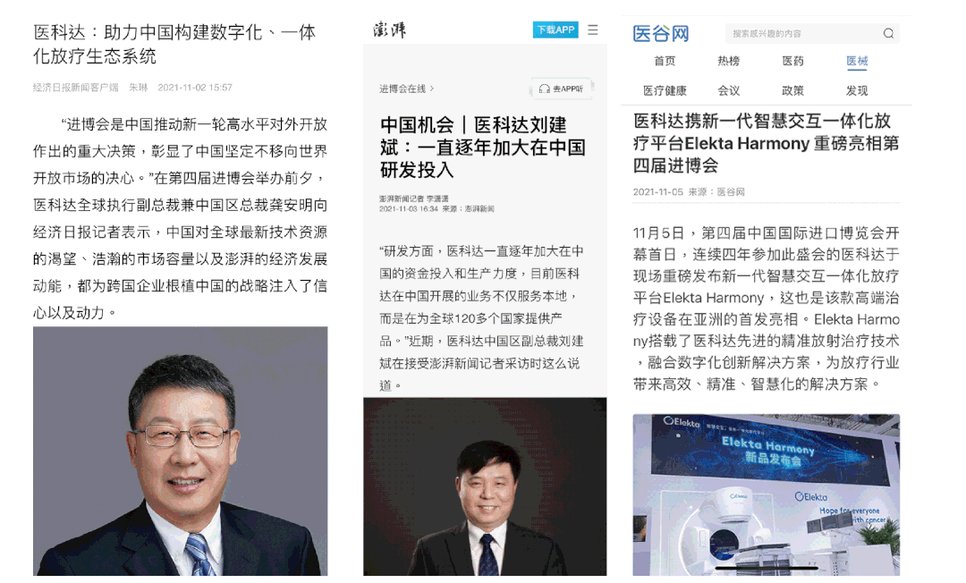 近日来,医科达在进博会的展出表现也引发了人民网、新华社、澎湃等多家国内主流媒体、专业媒体的关注与报道,各界对医科达所呈现和展示的“肿瘤信息化智慧解决方案”予以了更多期许与关注。