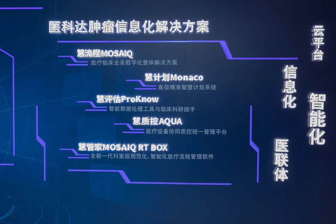 依托于包括伽玛刀、高场强磁共振放疗系统、直线加速器解决方案、近距离治疗平台、肿瘤信息系统及放疗计划系统在内的极致精准解决方案,医科达“一站式智慧解决方案”在进博会现场的全线集结及完整展示,将诊疗全流程与数据信息化管理深度融合,实现全科室智慧管理,赋能整个医疗行业的数字化生态构建。
