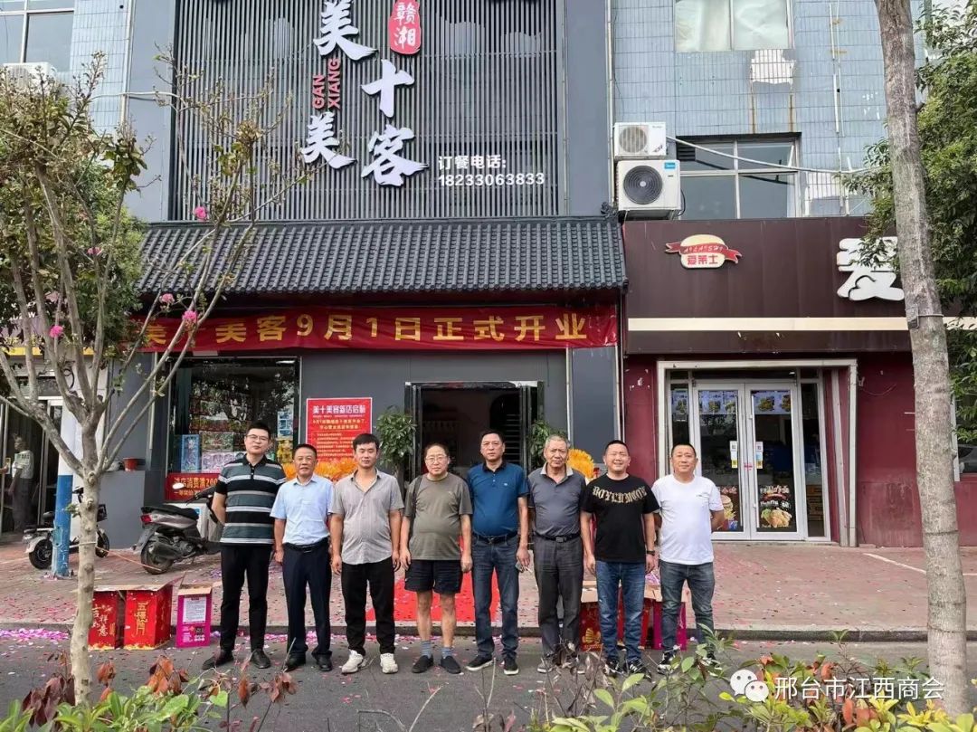 9月1日上午10时58分,邢台市隆尧县莲子镇西范村华龙大街,今麦郎园区繁华地段,首家《赣湘美十美客》饭店,在歌曲《开门红》、《恭喜发财》等乐曲声中宏张开业。邢台市江西商会会长高国庆、执行会长田宗福、常务副会长陈靖、副会长高平旺、胡志华、秘书长李友明、咨询左慧华、黄圣荣等一行8人,专程从邢台到场祝贺,并送去发财树。