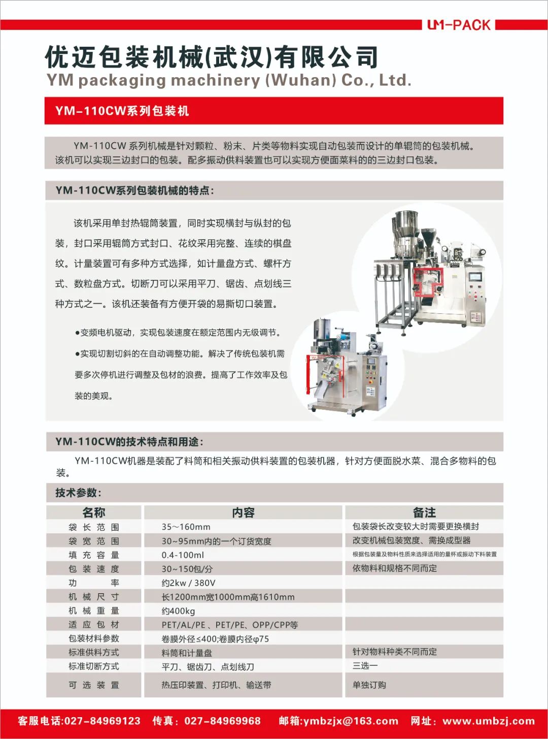 优迈包装机械(武汉)有限公司是一家专注于全自动中、小袋包装机、真空包装机、灌装机等包装设备的研发、生产及销售为一体的高科技企业。公司总部生产基地设立于风景秀美的江城-武汉。