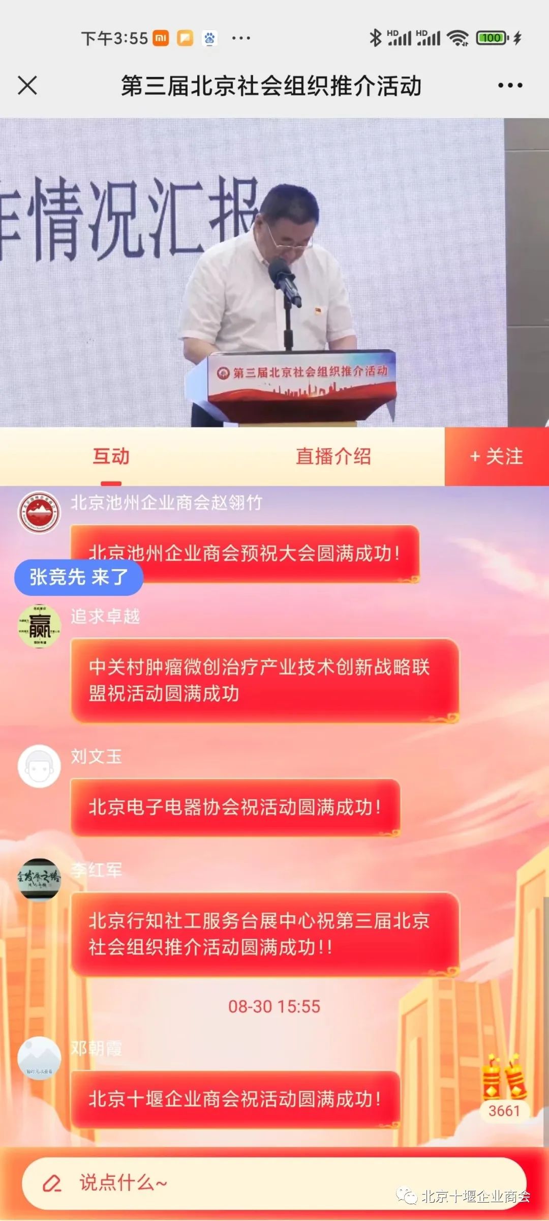 8月30日,第三届北京社会组织推介活动顺利开幕。北京市委社工委委员、市民政局副局长赵学刚,市社会组织管理中心党委书记温育梁、主任郭卫亮及中心班子成员出席。北京市行业协会商会综合党委系统52家联合党委负责人和优秀社会组织代表150余人参加活动。商会秘书处线上参加了此次活动。