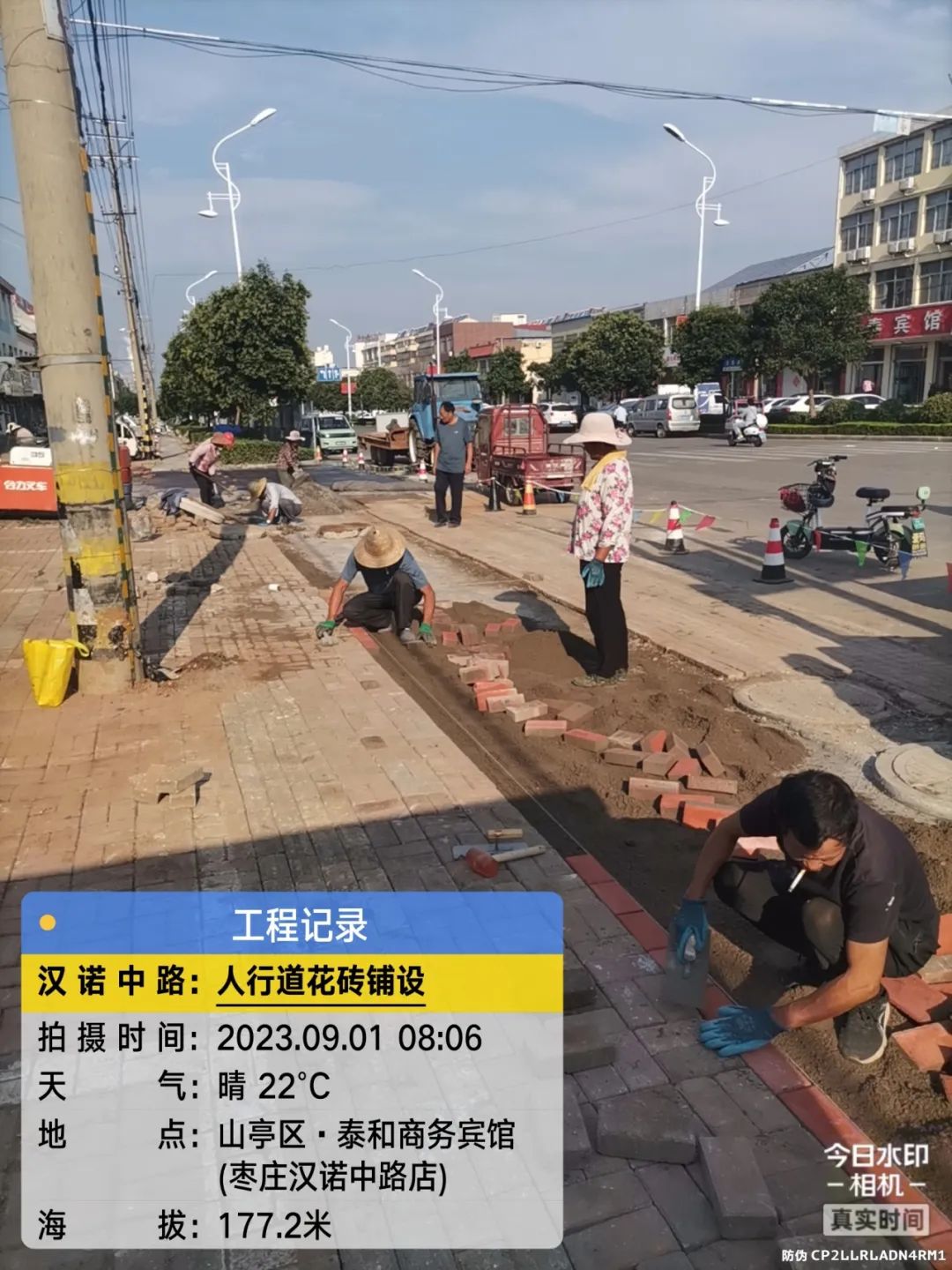 汉诺路管道铺设已完成,人行道花砖铺设中。