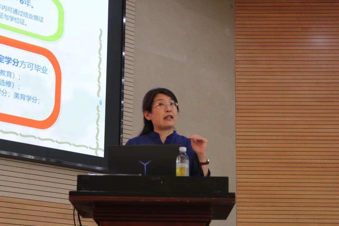 开学典礼后,学院教务办公室主任郅云老师为2023级新生做学业修读规划教育。学院党委副书记、副院长周晶围绕安全教育、校纪校规、党团组织建设及第二课堂平台情况进行了介绍。