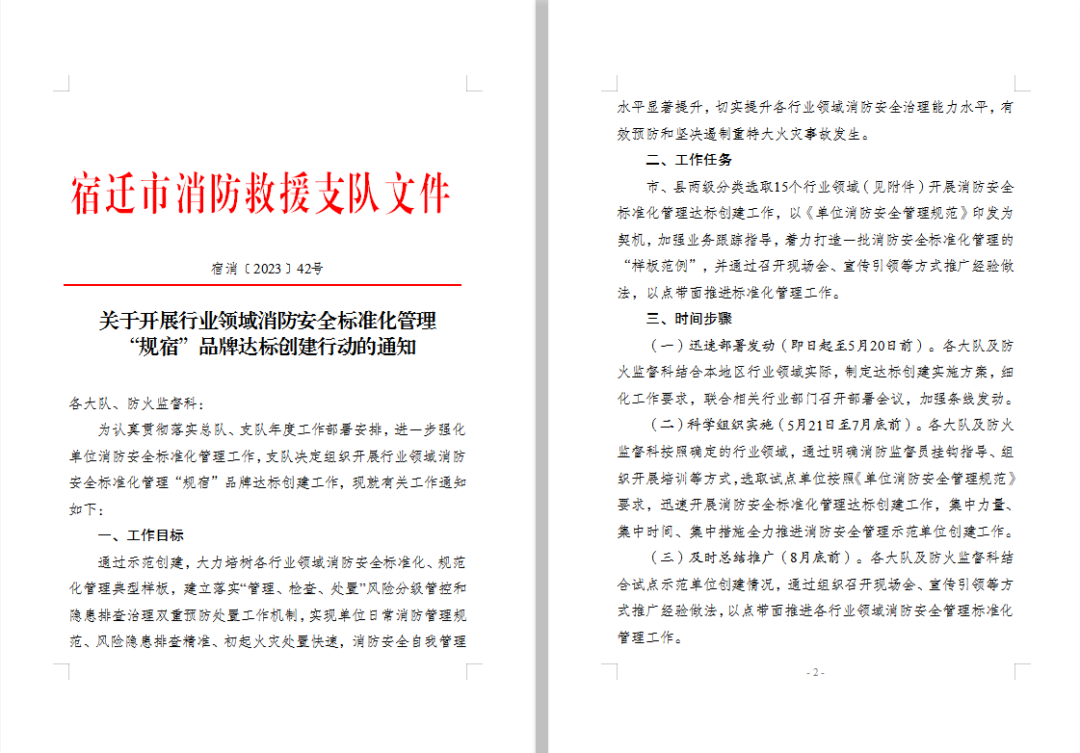 制定印发《关于开展行业领域消防安全标准化管理“规宿”品牌达标创建行动的通知》,召开专题部署会,明确工作任务,细化时间节点,严守工作目标。