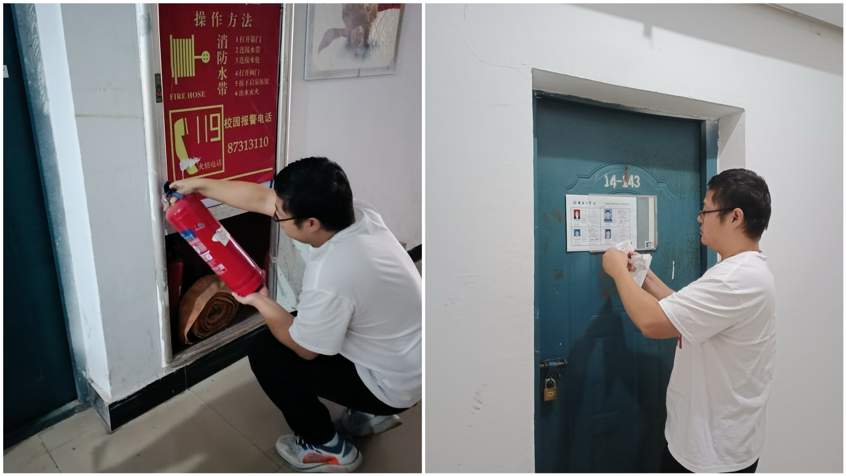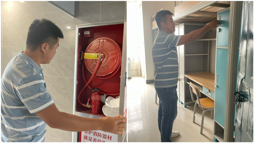 此次检查自查包括消防安全、治安安全、安全教育、学生住宿管理制度、网络监控及新老宿舍生活设施设备等内容。检查小组分别下到学生宿舍12栋、14栋、16栋、30栋开展安全大检查,在检查过程中,学院领导及辅导员老师全面排查了宿舍楼道消费安全设施、消防通道、新老学生宿舍生活设施设备、水电等区域存在的安全隐患,对于排查发现的问题形成台账记录,及时反馈跟进维修项目,有效杜绝安全隐患,确保学生返校时,各楼栋宿舍无安全隐患或设备损坏情况,同时还对学生宿舍卫生、文化建设等进行逐一排查,为学生提供安全、文明、温馨的宿舍环境。