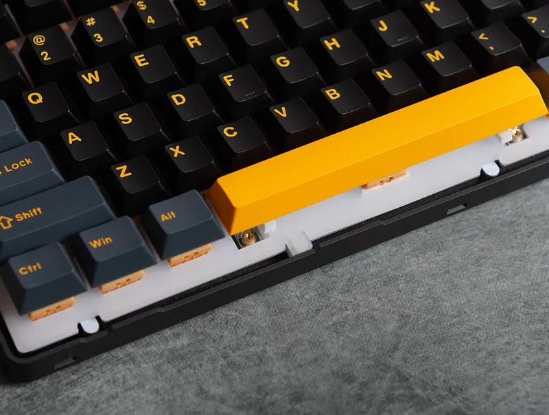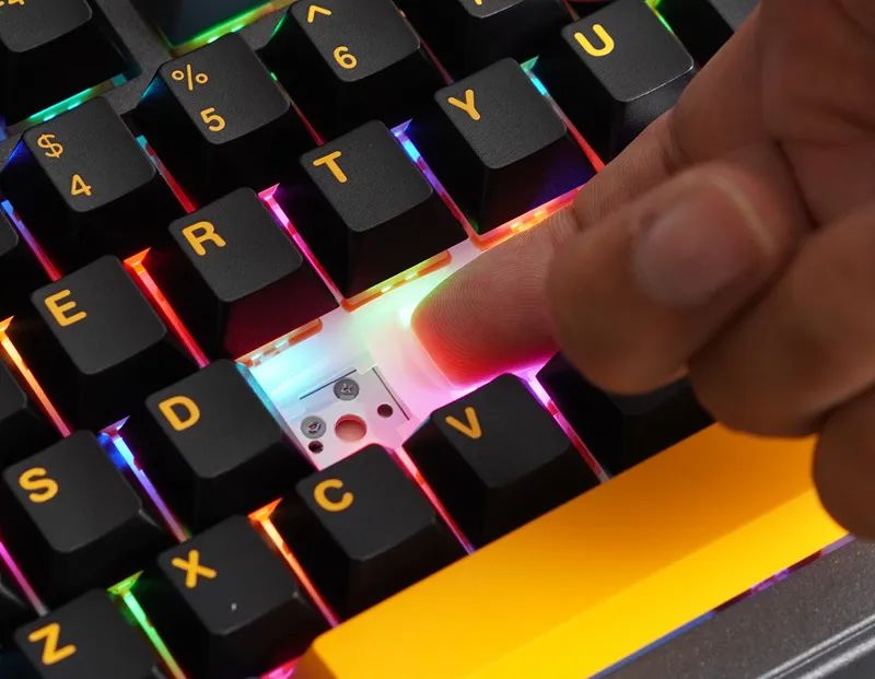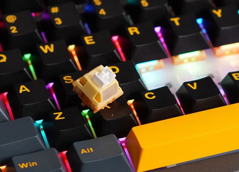 FEKER K75有钢版,匹配凯华香草冰淇淋轴,无钢为定制柯基轴,两者手感、声音表现,都是颇为不错的。另外,全系三模,带接收器收纳,RGB下灯,硅胶垫缘故,亮度,无钢款要比有钢高亮许多。至于卫星轴表现,无钢款用的是PCB螺丝卫星轴,手感差于有钢款的钢板卫星轴,后者更干脆、无杂音。