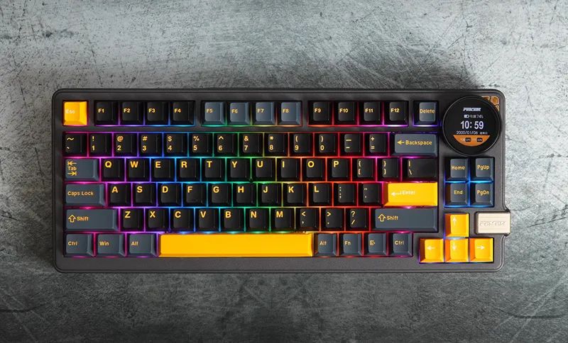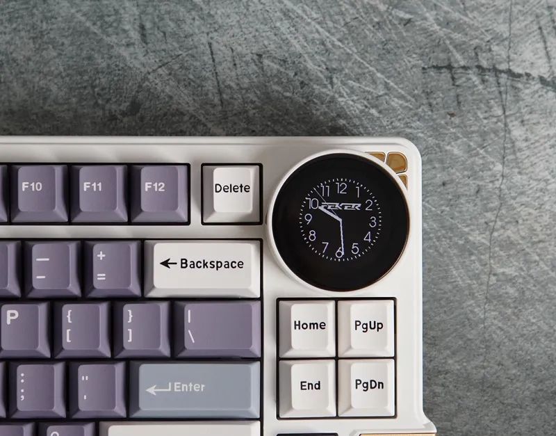 FEKER K75,主打一个差异化,特色点,可以说是非常突出。比如二合一的大屏+大旋钮,首款无钢热插拔量产键盘,尽管当前来说换轴可玩性几乎为0,得等后续配件跟上。而这结构方案,反而成为更高可玩性的点,如果入手无钢版本,你后期可以切换为传统Gasket结构或TOP结构。一把键盘,三种结构体验。