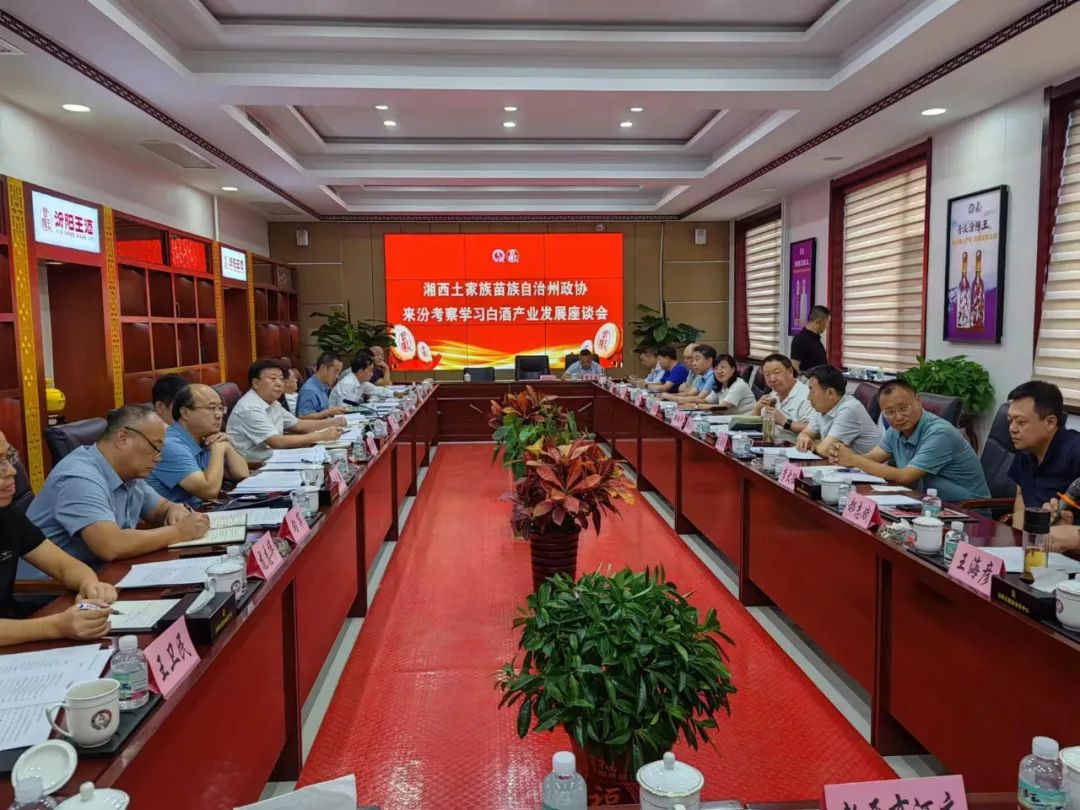 考察组一行先后深入西凤酒业、柳林酒业、太白酒业、汾酒博物馆、中汾酒城、新晋商酒庄、汾酒老作坊、汾阳王酒业,就党政部门扶持酒业发展的政策和服务措施、酒企发展的经验,进生产车间、看工艺传承创新、赏品牌文化建设、听产业发展历程、品佳酿精髓、谈发展真经。吕梁市政协副主席郝金光以"汾酒巧遇酒鬼酒,互利合作手拉手。两大品牌闯天下,共赢征途好朋友。"的寄语相赠。