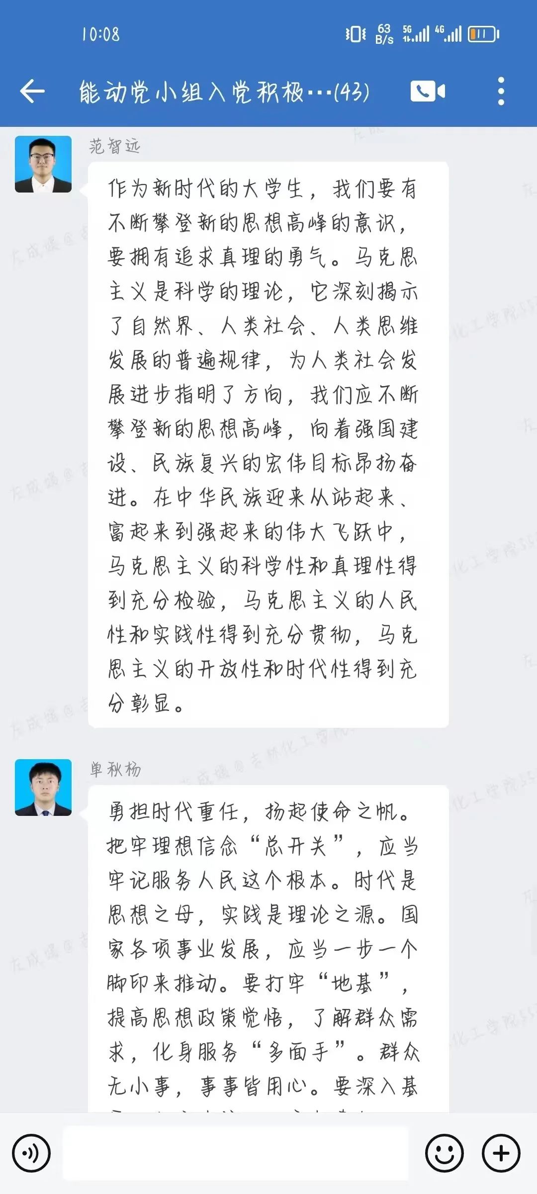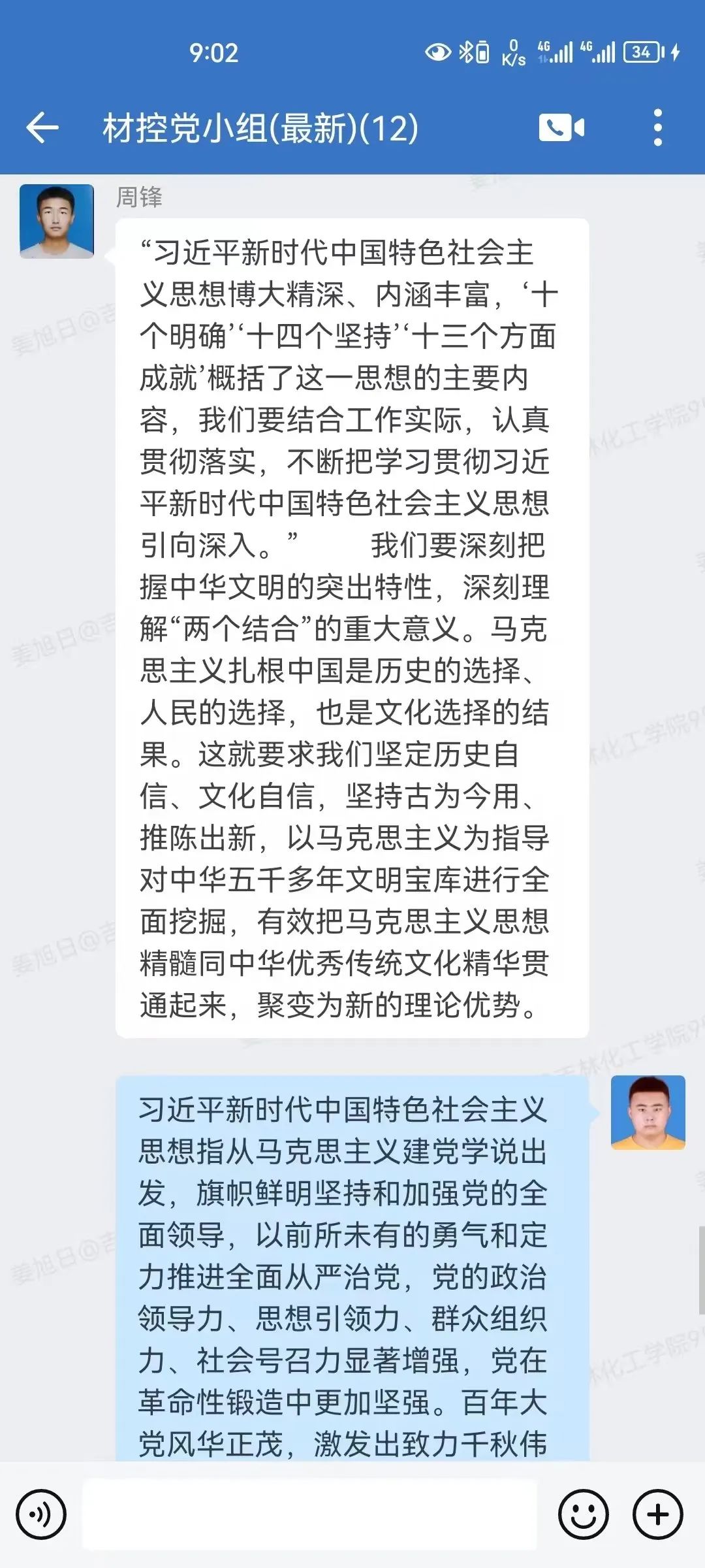 为深入贯彻学习《不断攀登新的思想高峰——深入学习和全面贯彻习近平新时代中国特色社会主义思想述评》,提升我院学生党员的政治素养,加强我院学生党员的凝聚力,增强责任意识与使命意识。机电工程学院学生党支部依托企业微信平台召开八月党小组会议。我院学生党支部全体党小组成员参加本次会议。