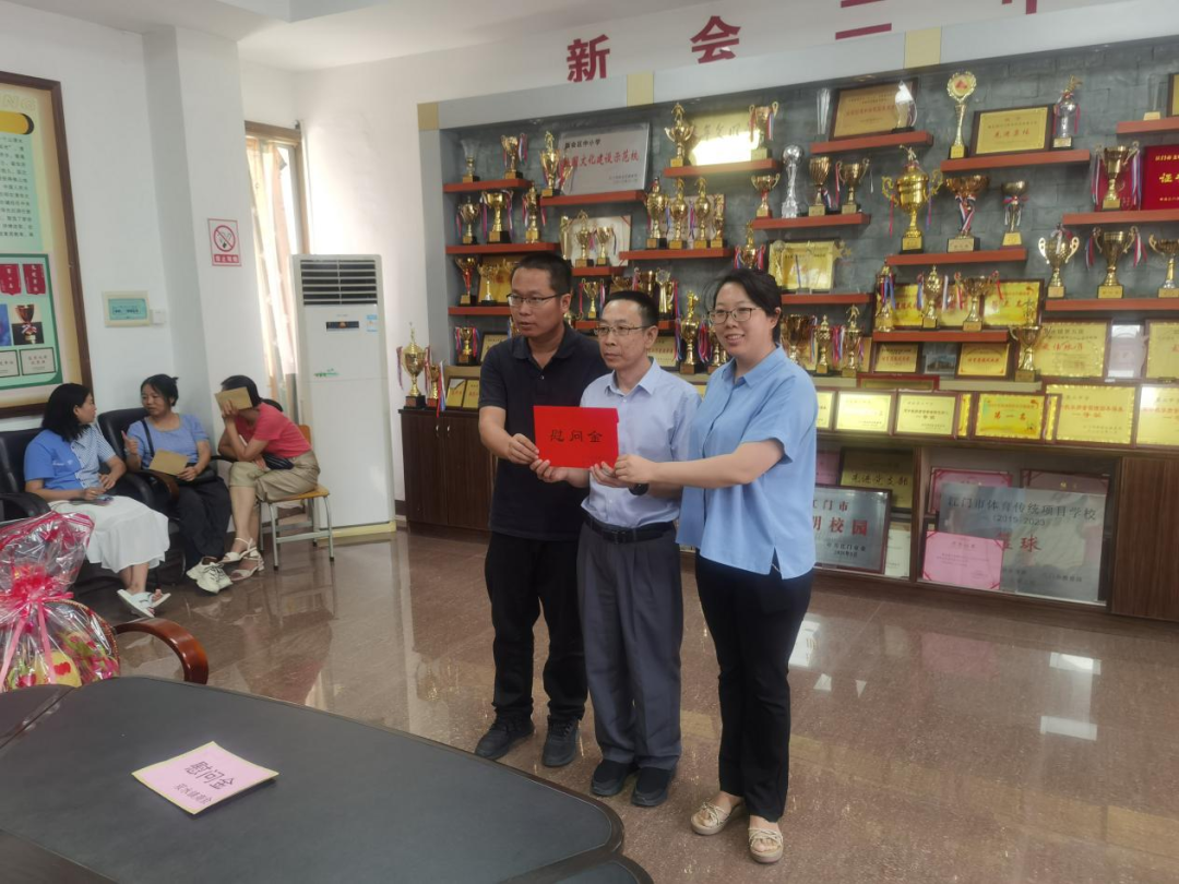 最后,商会代表和镇政府代表为教师代表送上慰问金,向他们致以节日的祝福和诚挚的问候。