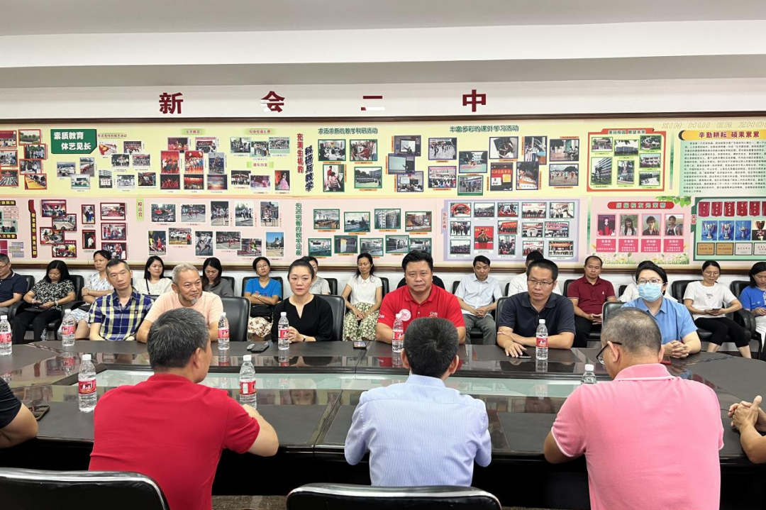 座谈会上梁永源校长汇报了新会二中今年来的办学情况,着重介绍学校教育教学质量提升、办学特色、品牌创建等情况。