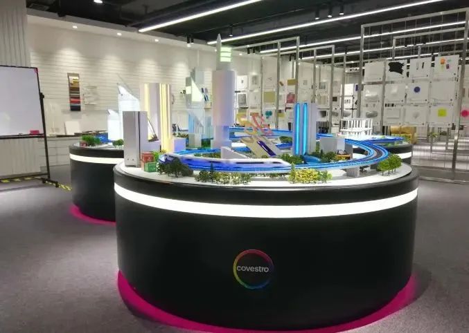 位于国家会展中心的材料馆®️上海馆内,科思创以未来城市为主题的沙盘,将科思创涂料、粘合剂及特殊化学品业务部门的最新产品托“盘”而出。