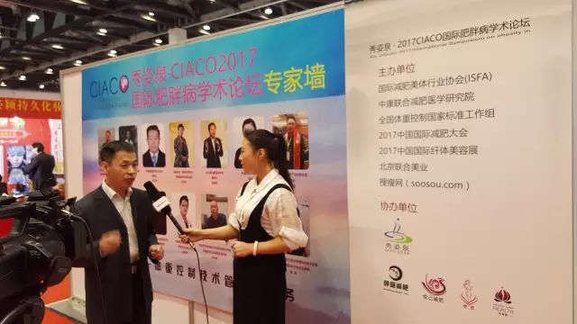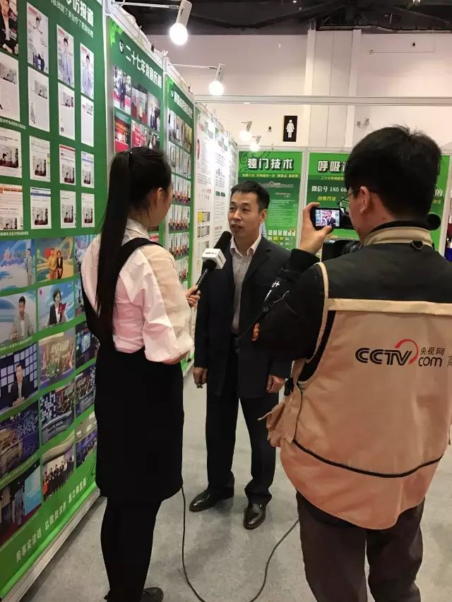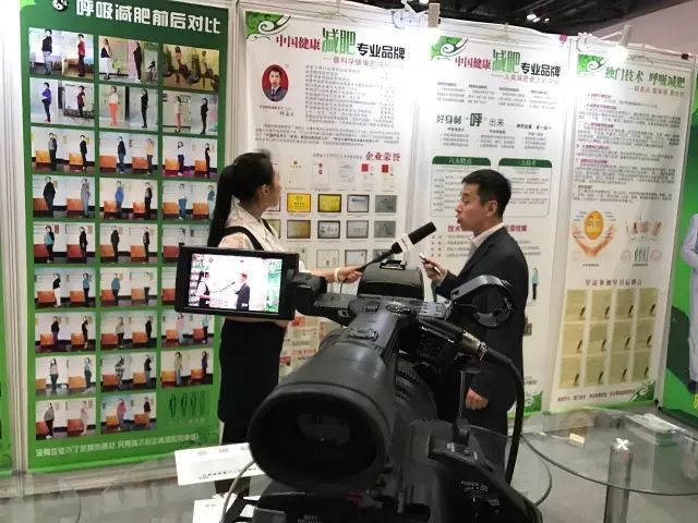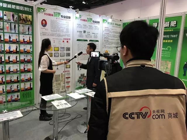 央视网在中国国际减肥大会展位上现场采访呼吸减肥创始人30年发展历程