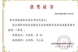 学生获全国职业院校高铁信号系统维修学生职业技能竞赛一等奖