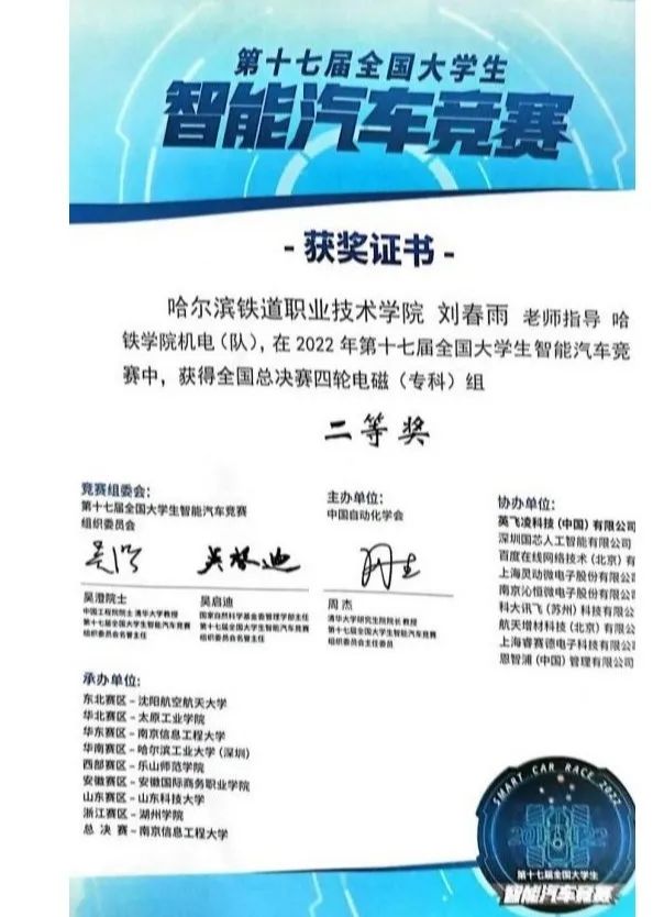 学生获全国大学生智能汽车大赛国赛二等奖