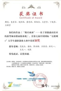 省级大学生创新创业大赛金奖全国大学生创新创业大赛铜奖