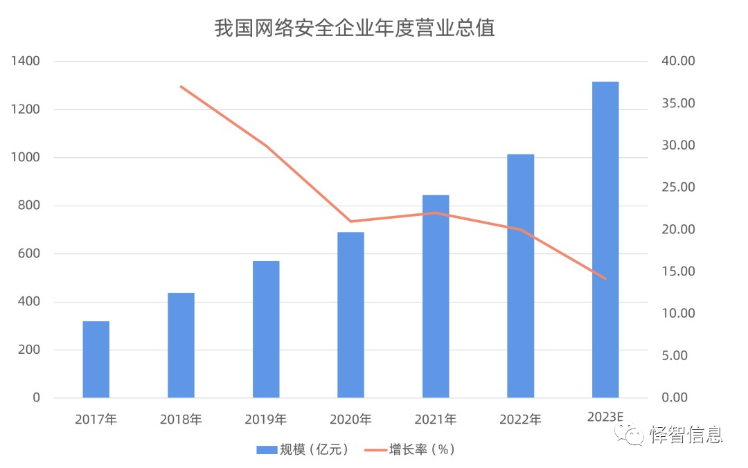 我国网络安全企业2022年度整体收入规模约为1014亿元,相比2021年度增长约169亿元,整体增长率为20%,随着我国网络安全法规的不断完善,企业数字化转型的安全需求持续提升,预计2023年网络安全产业增速将重新回到30%以上。这显示出网络安全行业将继续保持快速增长的势头,且增速可能进一步加快。这对于我国网络安全行业的发展和整个数字经济的稳定发展都是一个积极的信号。