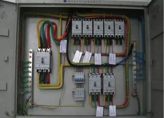 配电箱内结线基本整洁,导线颜色选择正确,回路编号齐全正确,箱壳箱门接地可靠。