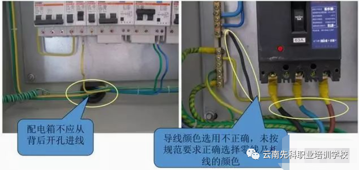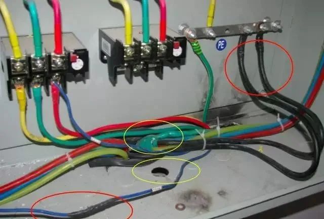 2、配电箱内相线颜色不明确区分;箱体开孔不合适,箱内存在导线接头。