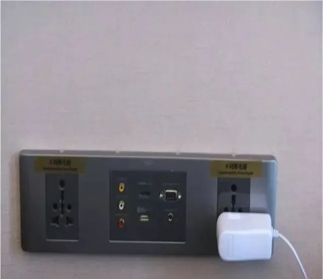 客房内开关、插座面板平整美观,紧贴墙面,安装尺寸控制较好。