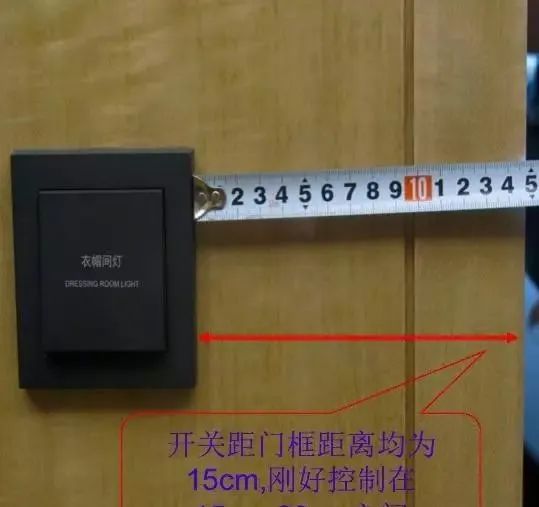 1)开关安装位置便于操作,开关边缘距门框边缘的距离0.15~0.2m,开关距地面高度1.3m;拉线开关距地面高度2~3m,层高小于3m时,拉线开关距顶板不小于100mm,拉线出口垂直向下。