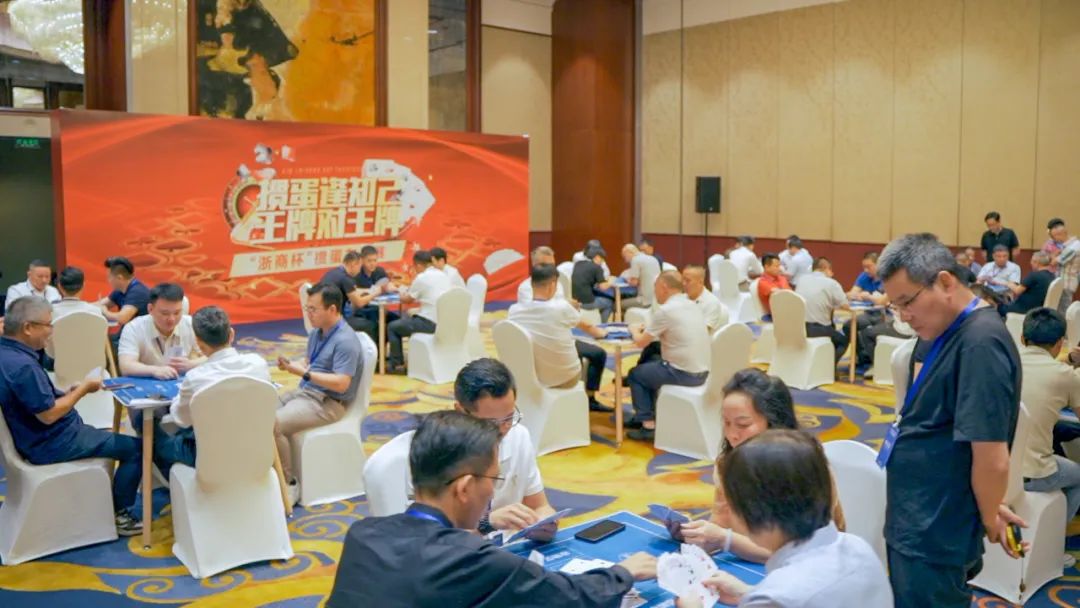 论坛结束后,商会举办“浙商杯”掼蛋友谊赛。44位选手经过自由组队、随机组队的方式,分成22支队伍, 互相对阵。比赛中各选手密切配合,精确计算、沉着应战,对阵双方比牌技、比智慧、赛成绩、赛友谊,一路你追我赶,现场气氛既严肃紧张,又轻松活泼。