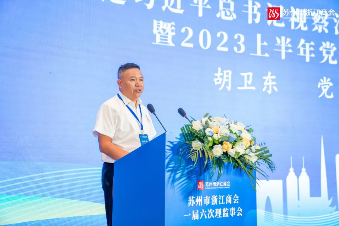 会上,党支部书记胡卫东作《传达习近平总书记视察江苏、苏州讲话精神暨2023上半年党支部工作报告》。他说在苏浙商企业家要以总书记关于民营经济发展的重要论述为遵循,牢记总书记嘱托,将总书记的重要讲话精神转变为企业扎扎实实的发展举措,为经济社会发展作出更大贡献。