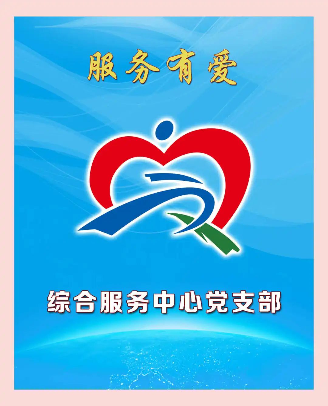 综合服务中心党支部品牌为“服务有爱”,标识以蓝色和绿色线条构筑成大写R、D、Z、F四个字母,意为日电综服,红心代表综合服务中心党支部始终秉承“初心、匠心、贴心、真心、暖心”的工作态度和“细致、精致、极致”的业务标准,致力于实现“服务有爱无止境”的服务目标。由红色爱心和蓝色、绿色线条组成的整体图案,就像一队团结奋进的日电服务队伍在爱心构筑的大道上走向未来,为企业高质量发展全力提升后勤保障服务。
