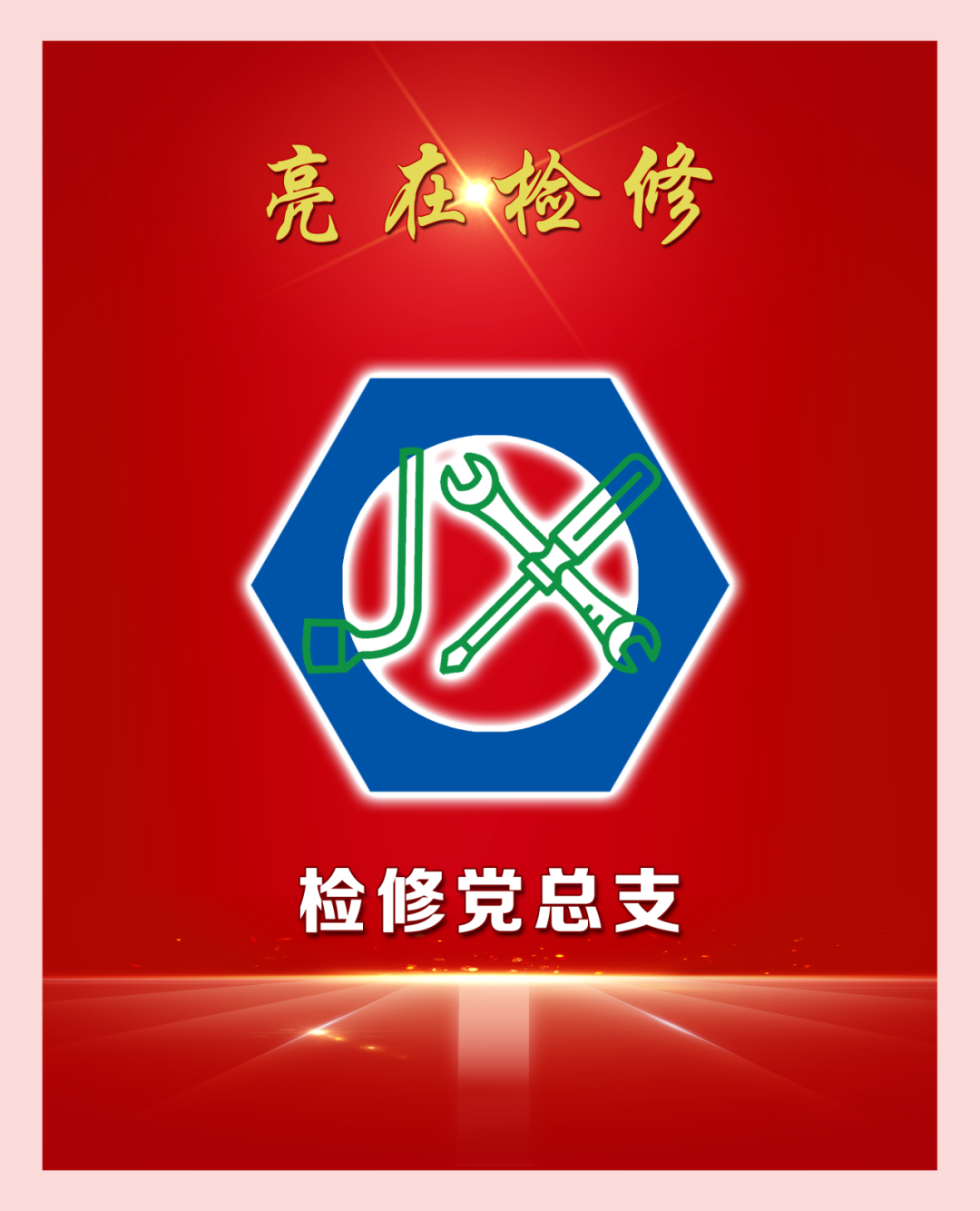 检修党总支品牌为“亮在检修”,以华能“三色”文化为引领,结合部门实际工作,形成了“党建引领争先锋,亮在检修树正气”的支部特色文化。标识由工具扳手、螺丝刀及螺丝帽组成“检修”基本标识,意为检修党总支将党建引领融入生产重点工作,创新开展具有支部特色的“亮在检修”主题实践活动,进一步推动重点工作落实、党员示范、风气引导,激发队伍“精气神”,在提质增效、能源保供、三创争先、检修技改等工作中充分发挥党支部的战斗堡垒作用和党员先锋模范作用,让检修人在属于自己的舞台上发光发热,叫响“亮在检修”品牌。