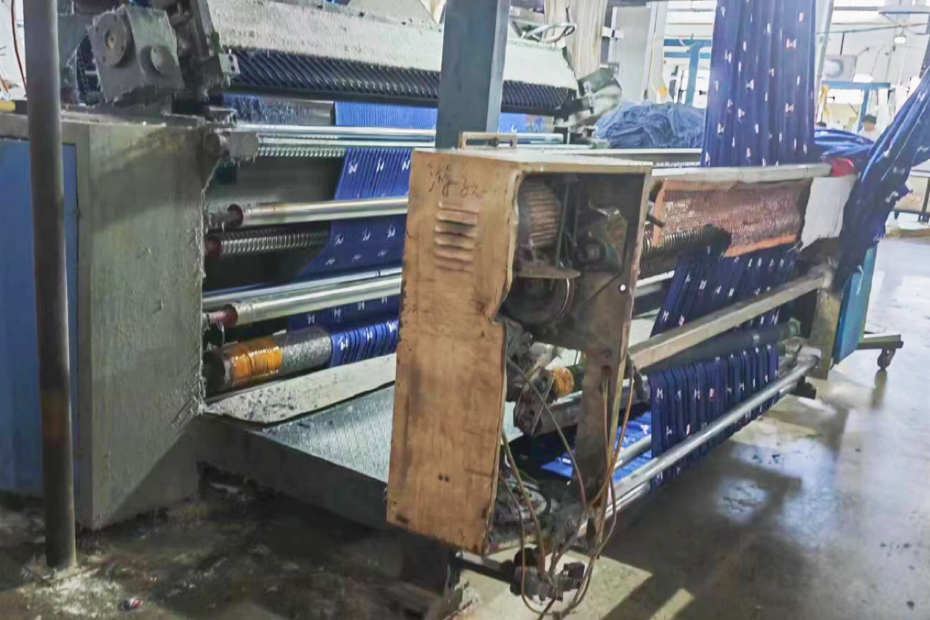 执法人员对常熟市华宇针织印染有限公司开展执法检查时,发现车间内多处机器驱动部位防护损坏等情况。
